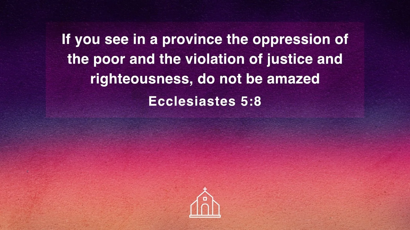 Janelle Higdon 6/29/25 Janelle Higdon 6/29/25 We Need Food Ecclesiastes 6:7-9 | Pastor Luke Walker Read More Janelle Higdon 6/29/25 Janelle Higdon 6/29/25 Buried for a Thousand Years Ecclesiastes 6:1-6 | Pastor Luke Walker Read More Janelle Higdon 5/19/25 Janelle Higdon 5/19/25 Make the Gloomiest Day Feel Sunny Pastor Luke Walker | Ecclesiastes 5:18-20 Read More Janelle Higdon 5/12/25 Janelle Higdon 5/12/25 Take What You Need Son Pastor Luke Walker | Ecclesiastes 5:13-17 Read More Janelle Higdon 5/12/25 Janelle Higdon 5/12/25 I Never Sleep Pastor Luke Walker | Ecclesiastes 5:8-12 Read More Janelle Higdon 4/27/25 Janelle Higdon 4/27/25 Leaders in the Fight for Equal Rights Pastor Luke Walker | Ecclesiastes 5:8-9 Read More Janelle Higdon 4/20/25 Janelle Higdon 4/20/25 Word Is Bond Pastor Luke Walker | Ecclesiastes 5:4-7 Read More Janelle Higdon 4/16/25 Janelle Higdon 4/16/25 Watch Ya Step, Kid Pastor Luke Walker | Ecclesiastes 5:1-3 Read More Janelle Higdon 4/16/25 Janelle Higdon 4/16/25 Poor Righteous Teacher Pastor Luke Walker | Ecclesiastes 4:13-16 Read More Janelle Higdon 3/24/25 Janelle Higdon 3/24/25 The Victims Dental Records Show They Love to Bite Pastor Luke Walker | Ecclesiastes 4:4-6 Read More Newer Posts Older Posts
